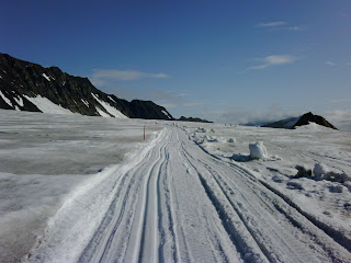 Happy Fathers’ Day and celebration of the summer solstice! I returned on Friday night from our first week long on-snow camp at APUNSC’s Eagle Glacier training facility. We take advantage of this Alaskan glacier to maintain our snow-feel and ski-specific training over the summer. We’ll be up for three weeks total over the summer: one week each in June, July, and August. Following are some snapshots from the week: