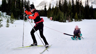 Sharing her grandmother Barb’s birthday of February 1st, Aria Grandi is an incredible little girl who brings big smiles to the ski team whenever she hangs with us. Sara tones her buns of steel by towing Aria around on occasion while the half pint ski-star-in-training works Sara harder than any coach, yelling: “Faster!” Already fluent in Italian and refusing to snowplow while charging downhills, she is a hilarious and adorable addition to the Bow Valley’s favorite family. Keep up with their news as Sara and Thomas crusade for climate change HERE.