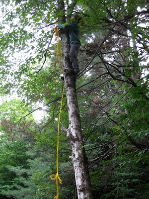 Worthington, MA – I am at my folks house this week (sleeping a lot, playing in the woods and getting some dirt under my fingernails). I rehung the rope swing and got a few new calluses from putting it to good use with Lindsey (in the purple).