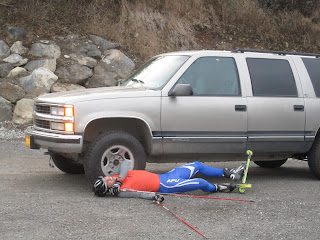Last weekend we had two time trials. It was awesome to go as fast as you can without holding anything back. The first was a classic roller ski sprint race. Each racer completed two prologues which is used to qualify for the heats – afterwards, we simulated two sprint finals using a “hunting start” or backwards pursuit. The person that won the prologue started last with the idea that all skiers would theoretically arrive at the finish around the same time. The following day we had a grueling 8k uphill skate time trial. We started at sea level near Potter’s Marsh and skied to the top of Prominence Point through neighborhoods. I will be competing in at least two hill climbs this year so it was good to experience the “pain train.” Uphill skiing is somewhat equivalent to mtn running and I love to go uphill so the time trial suited my strengths.