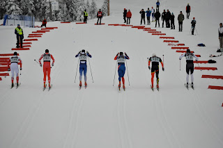 Today I finished second in the prelim (by .1 second to my teammate Sadie Bjornsen!) and fourth overall at the end of the day. I was skiing well in the final, leading in the middle of the race. Then, on the last downhill I slipped once (despite good skis) and a couple of us had a bit of a hangup allowing Perianne Jones to ski away from us. After that, I tanked on the double pole finish. Oh well, that’s sprint racing and I went for it.