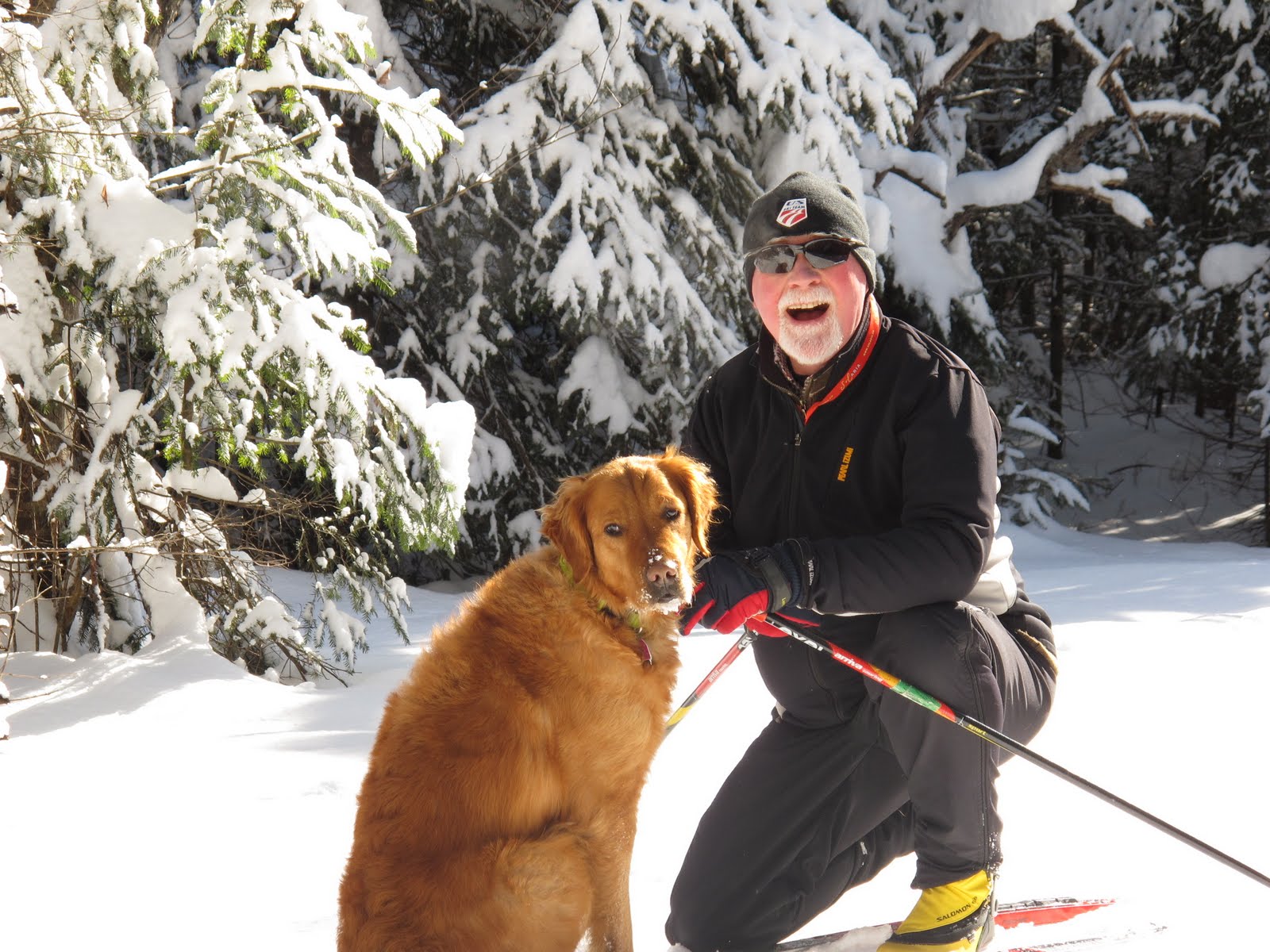 My dad on a ski with my dog Charley. Super great snow in VT these days, and it seems to just keep dumping. Awesome.
