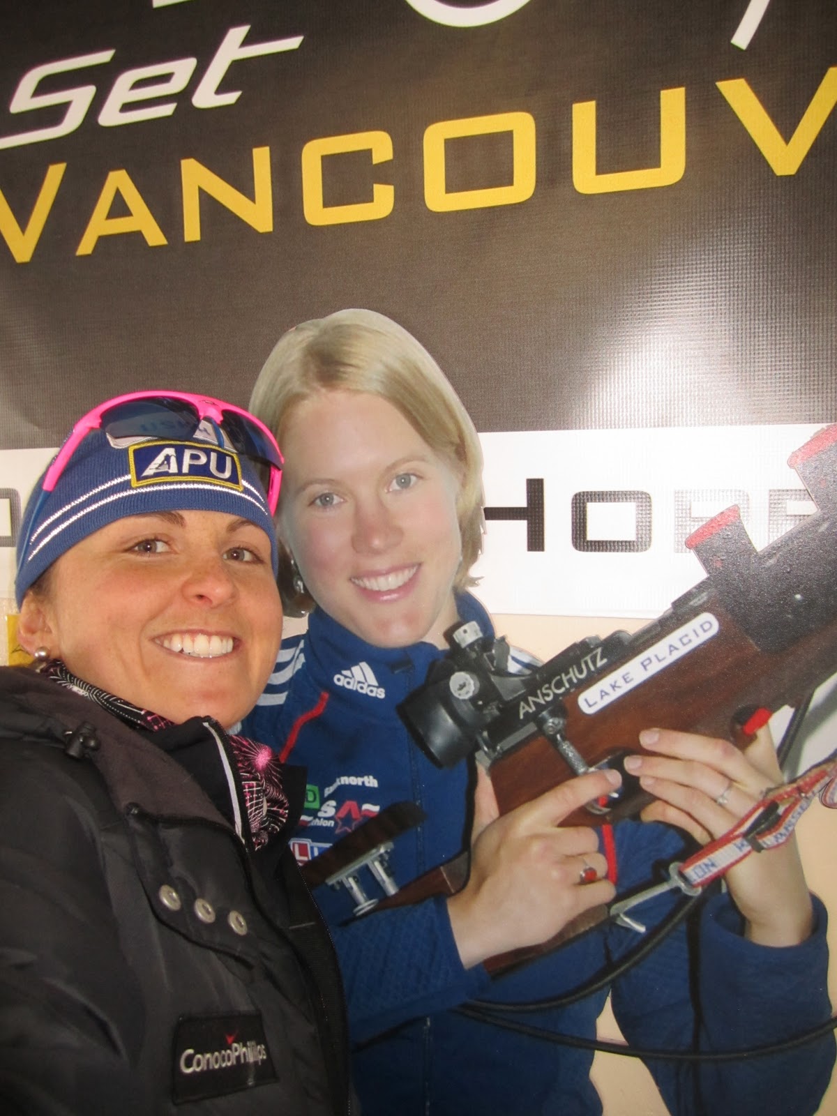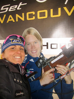 Speaking of new places, this is my first time in Lake Placid and the Adirondacks. Here I am in the Cross Country lodge with my 2010 Vancouver teammate, biathlete Haley Johnson. She has a cool new article on Fasterskier this morning titled “Creating those Right Connections.” Haley is a great example of how an elite athlete can positively impact communities. We share a similar philosophy.