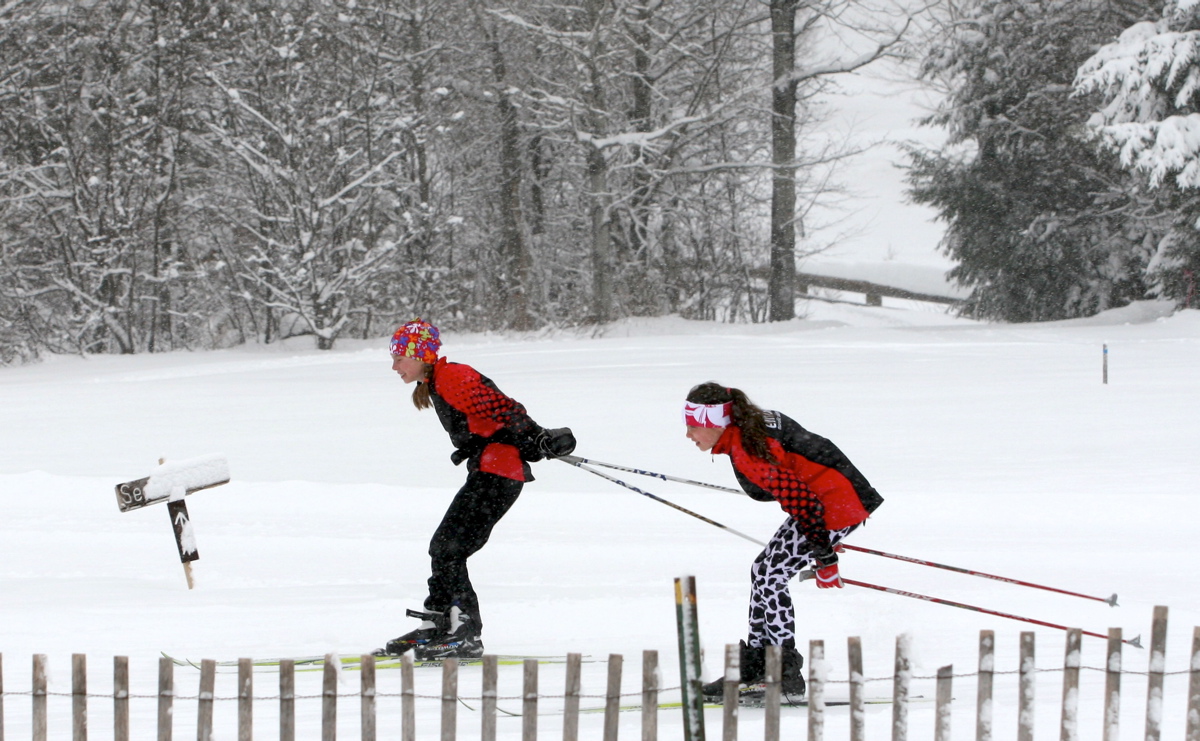 | Leah Brams and Valentina Rugerio from EMBK. Cruising around the stadium of the 2011 Bill Koch Festival. |