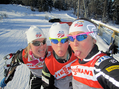 Sometimes, when things aren’t going your way, it’s best to focus on the positive notes, on the bright spots. While I have been having a rough start to my European Tour, some of my teammates have been turning in some awesome results. While I would have loved to be racing in the sprint heats yesterday, it was AWESOME watching Kikkan kick butt – LIVE outsprinting all the other World Cup girls including the “Queen of Vancouver,” none other than Norway’s national hero, Marit Bjorgen. It was extra fun watching the race from the side of the trail with my APU teammate, Sadie, who had an awesome first weekend of World Cup racing and Jessie, who had had her first World Cup that very day. Jessie’s direct comment from the day was, “I wish the race would have been longer because it was so much fun out there!”