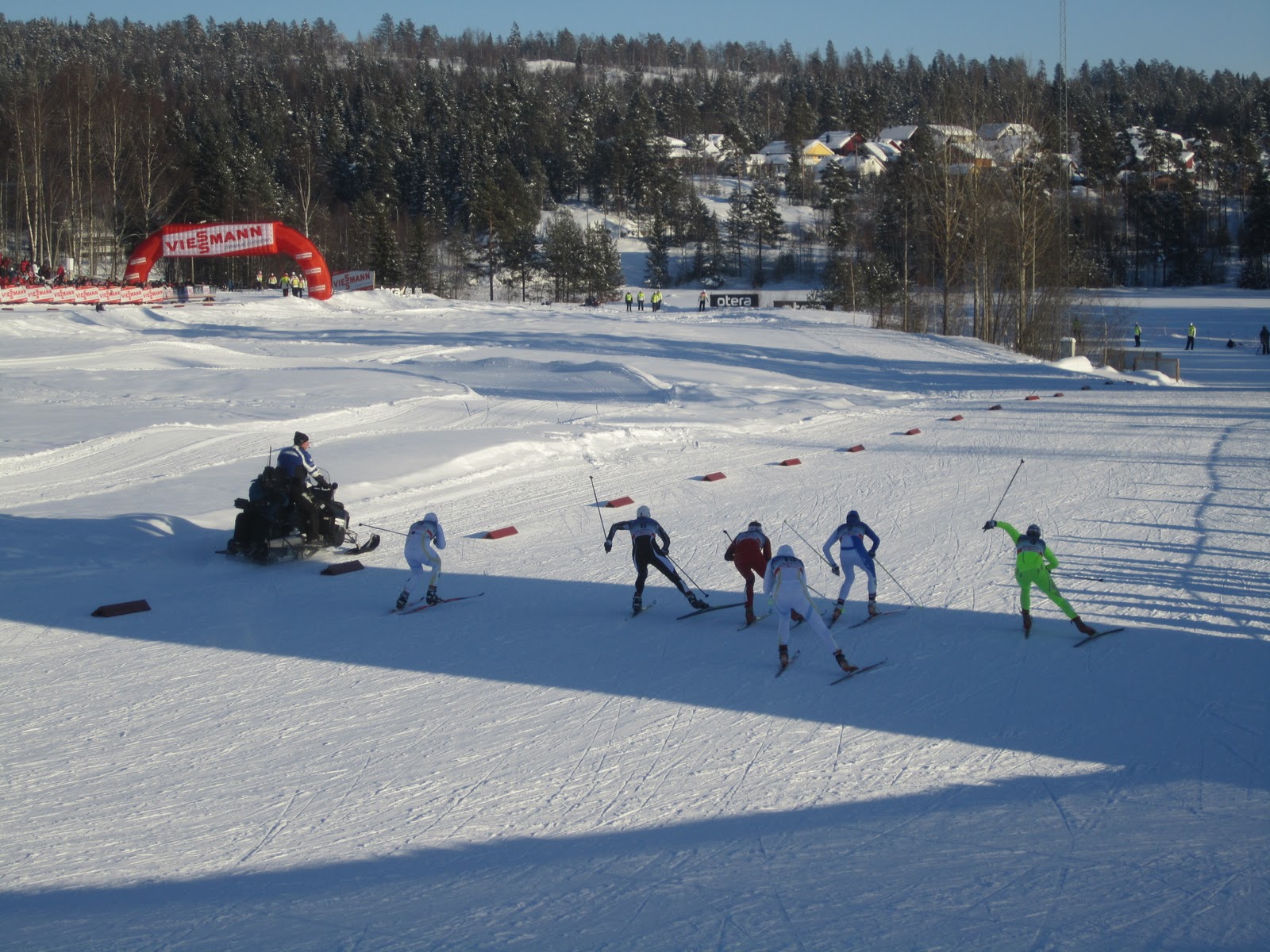 Sprint start – ladies followed closely by camera on snow machine