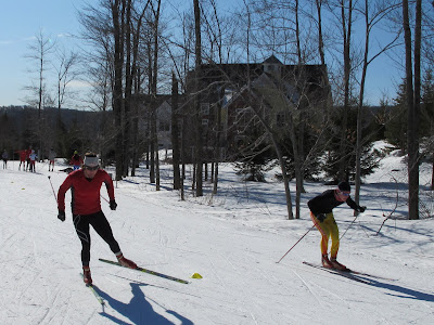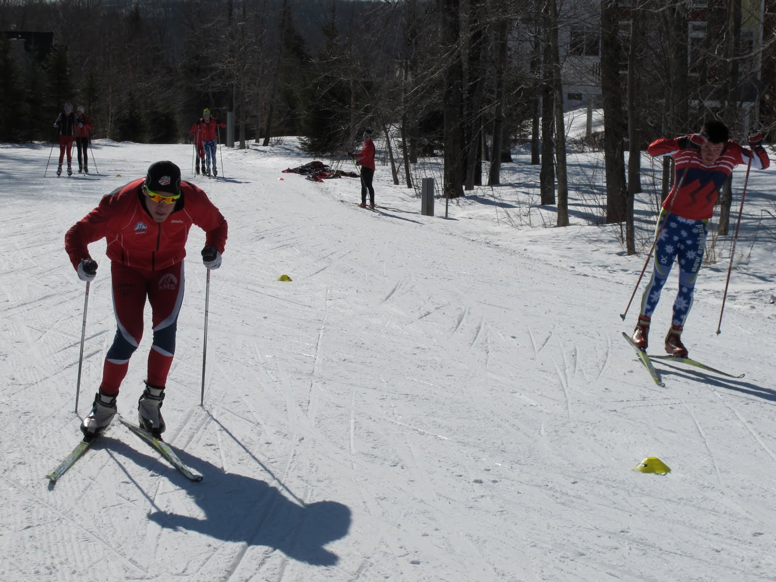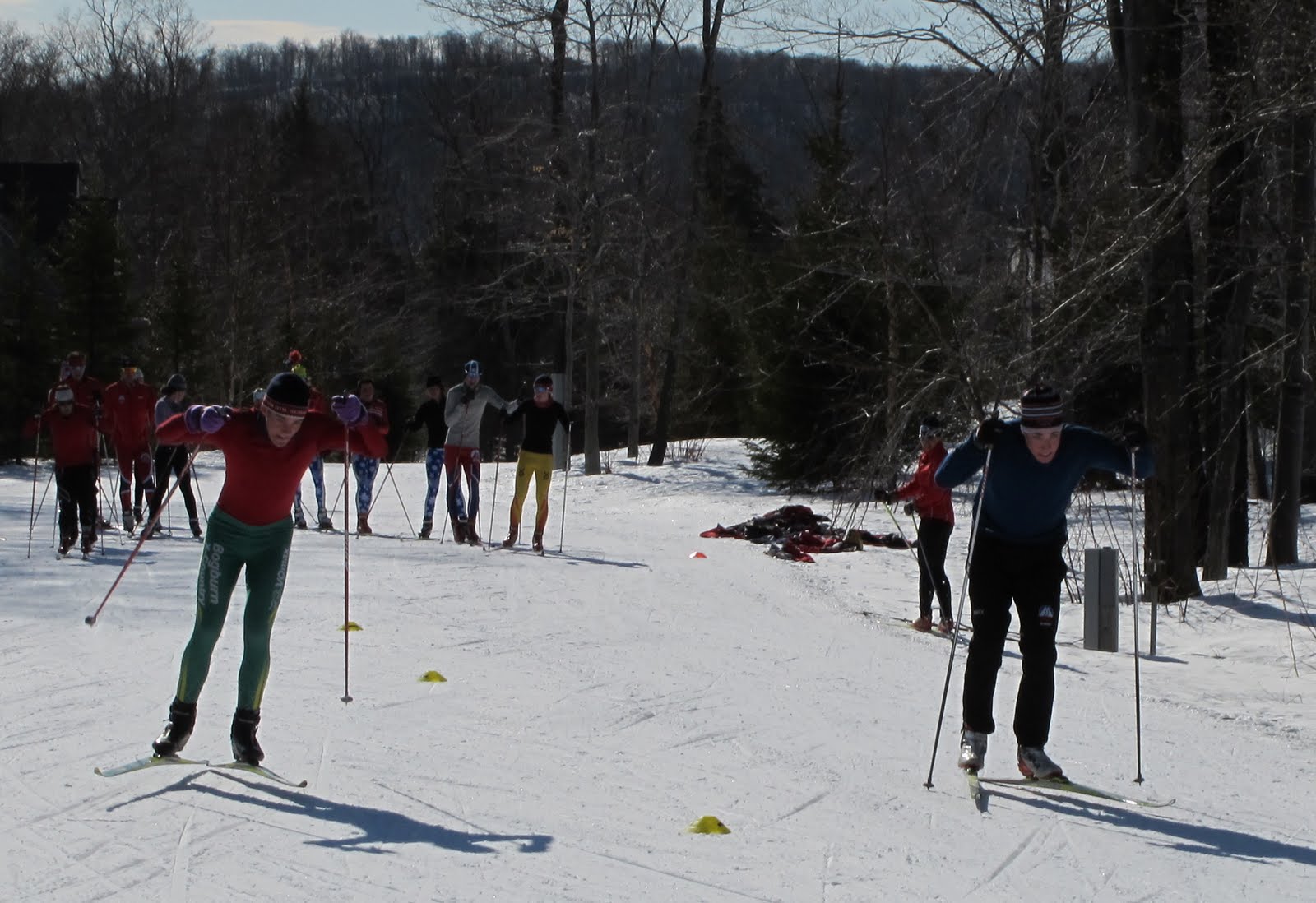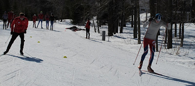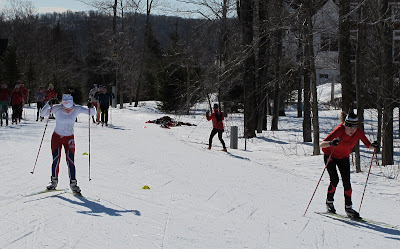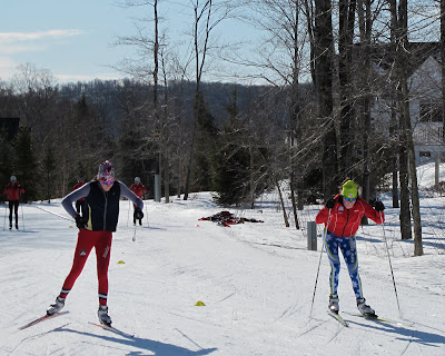 Mac lays it down on Nick (who learned not to bring his rock skis to sprint practice).