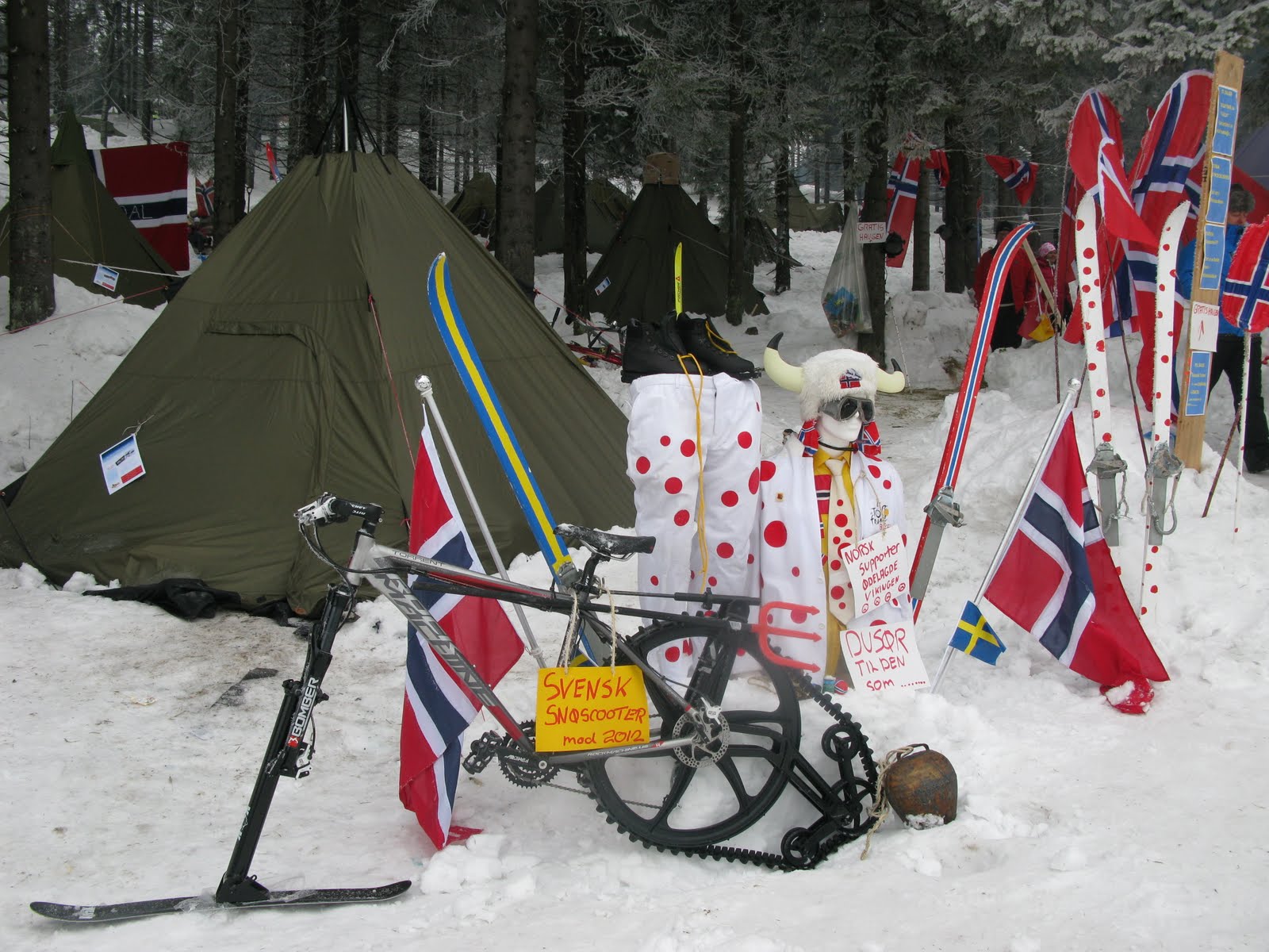 The trail Lars and I take back from a distance ski to Nordmarka is now overrun with crazy Norwegians winter camping for weeks along the course. For weeks. Seriously.