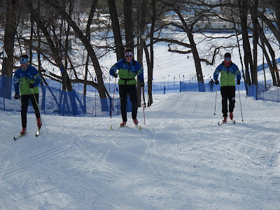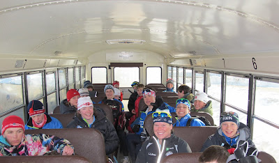 Our J2 boys finished their ski just as the J2 girls arrived in the stadium so we got a picture.