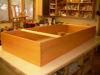 Upon returning to the valley I excitedly looked to my new “projects”. The first one was really the completion of a bookcase I had promised Alison this winter. Before leaving for Sun Valley I had cut all the necessary pieces and done a pre-stain on the wood. Last Wednesday I was finally able to finish sand and stain the pieces, and assemble it.