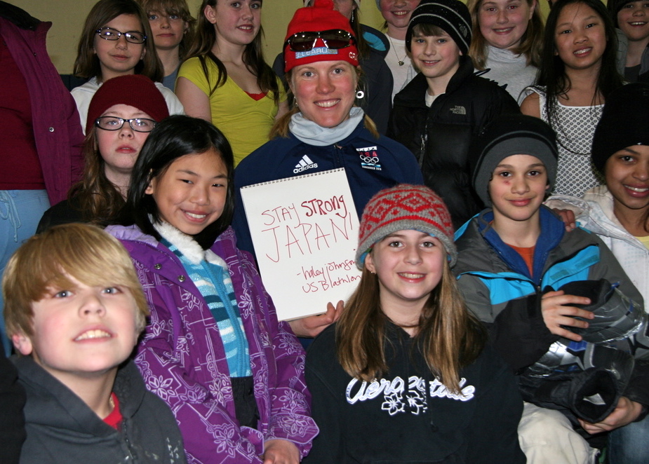 Once home, I had the opportunity to ski with the Lake Placid Elementary School’s gym classes, and in particular the 4th and 5th grade classes I had been visiting all year. I of course enjoy skiing with them and talking to them about the sport’s benefits and where it has taken me. But, I also really enjoy using it as a vehicle to look at the world in a different way, a perspective which can most easily be shared with a group of attentive kids fresh in from a ski themselves. I snagged that opportunity when their ears were open for new ideas after our our ski to talk to them about the current events in Japan and about my involvement with Skiers Helping Japan.