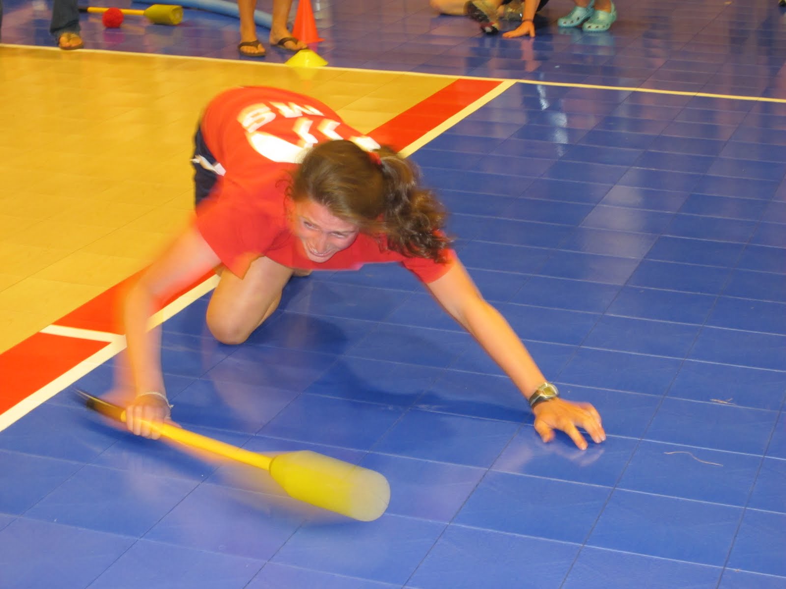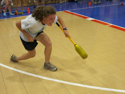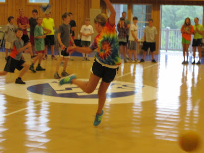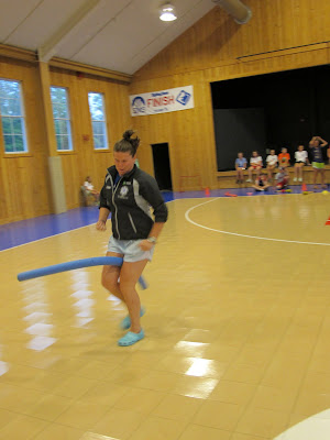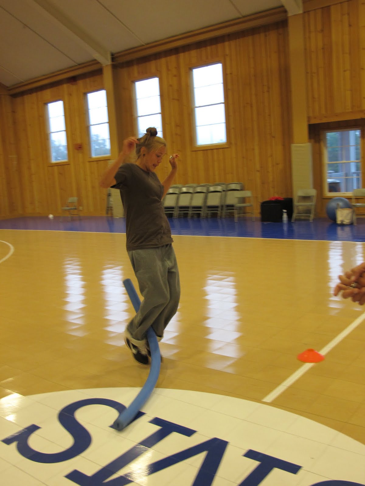 It poured rain all day so today we took advatage of our wonderful gym and we worked on strength, balance and agility. Some of the day was spent doing different strength exercises, some of the day was spent on education and some of the day was spent playing games. Above, Sophie works on her new dance moves.