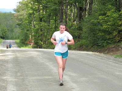 This afternoon we had a 2 mile uphill running test. We had planned a mtn run, but the work road is so eroded, we decided to start a new test. We will repeat this test 2 more times this fall to see how the group is responding to the training. Our new test starts at the bottom of the big hill next to the school, goes up County road, turns right and ends up by the Stratton Maintainance buildings, just above school.