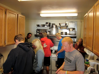 This is the post-training traffic jam in the glacier kitchen that is LUNCH!