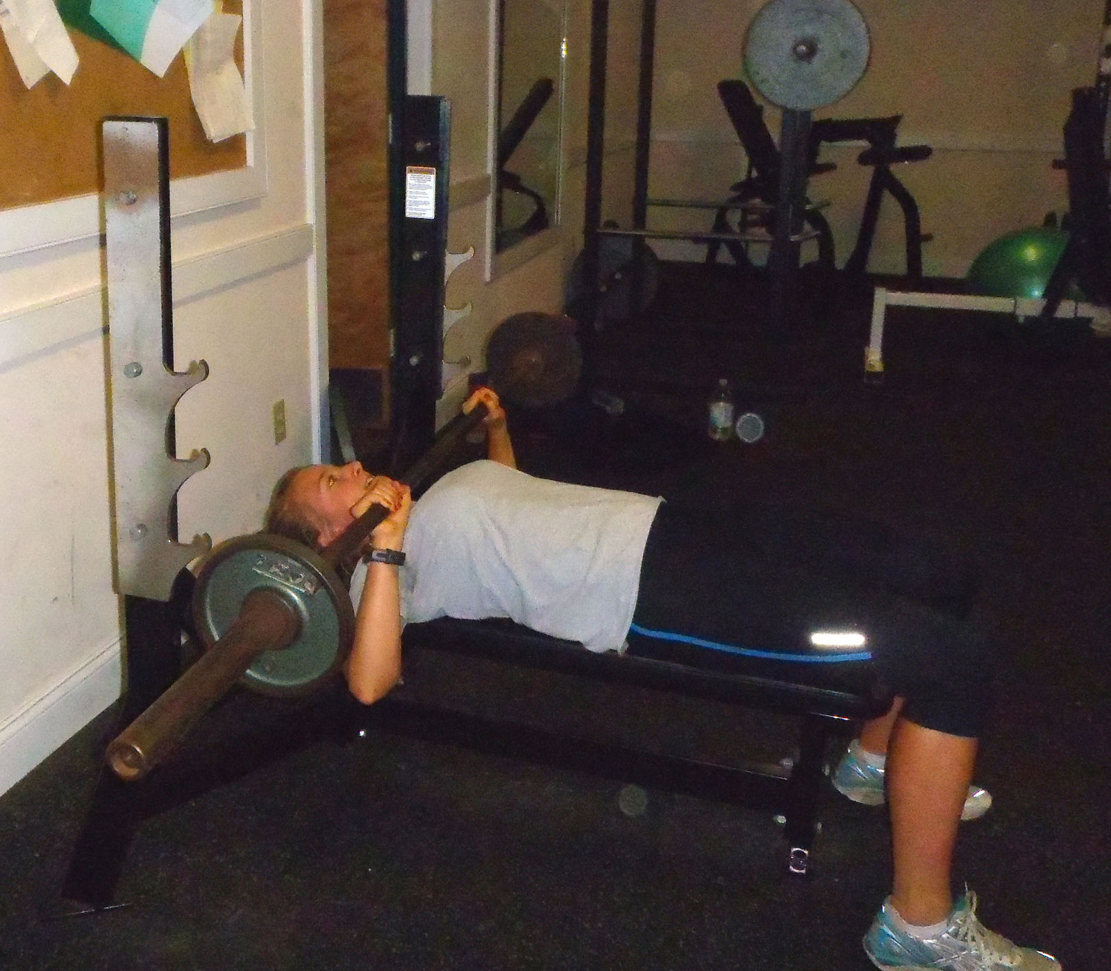 Fitzy puts up some big time weight on the bench press: follow this with 10 fast pushups!