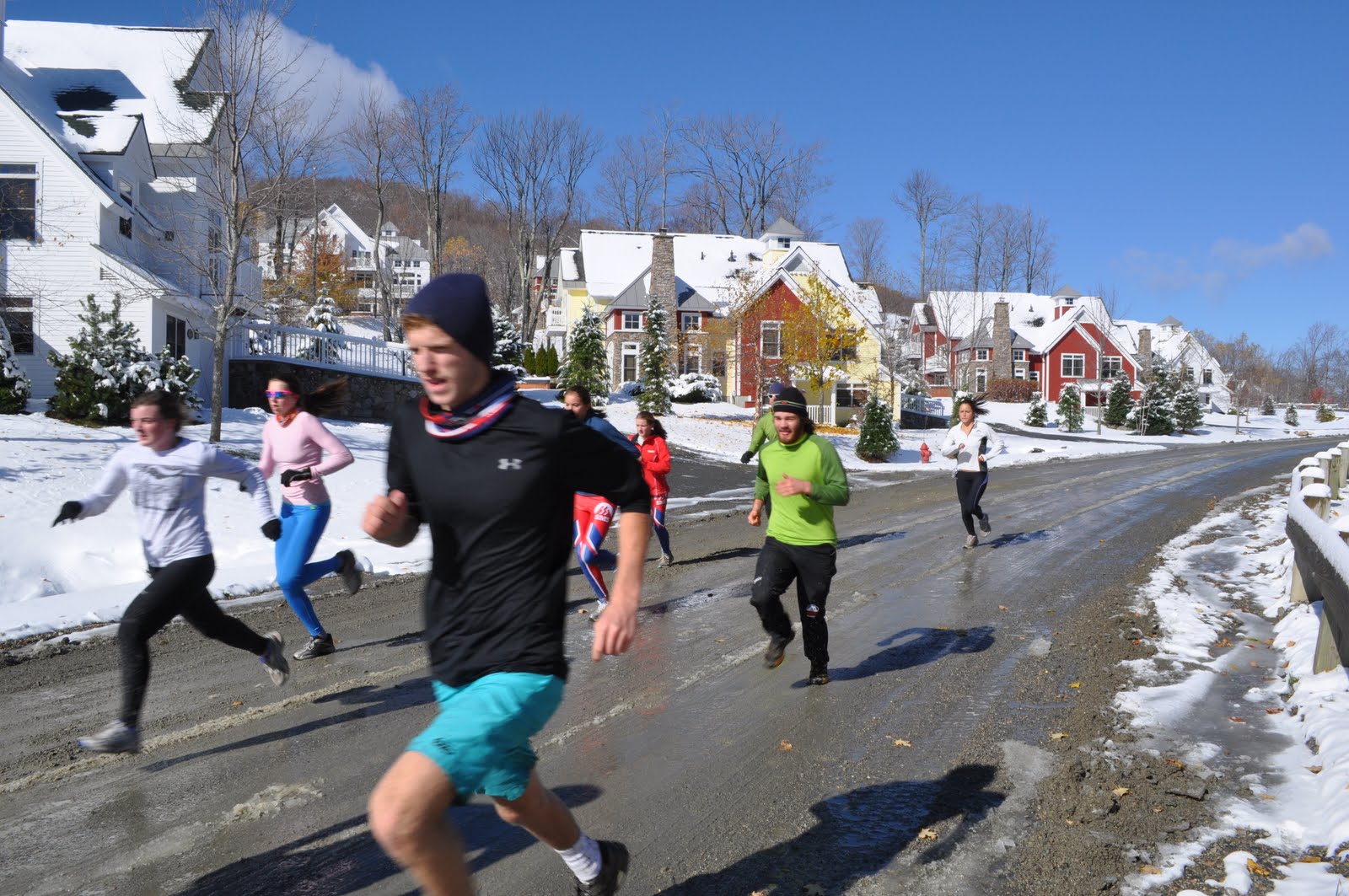 It feels like a spring skiing day with warm temps, sunny skies, and slushy snow! Our cross country running state meet is tomorrow and the running crew will head up north with Sverre & Liz and stay overnight in Lyme, NH (thank you to the Caldwell and Kerin families for hosting!) before the race. The state meet takes place across the state line in Thetford, VT tomorrow. Girls race at 11:45am, boys race at 1:45pm. Everyone else on the team will stay on campus and do a workout this afternoon and an OD tomorrow morning with Matt. For our morning session, we went for a short run and did some pickups on a dirt road near campus. It’s starting to feel like winter! More pictures here.