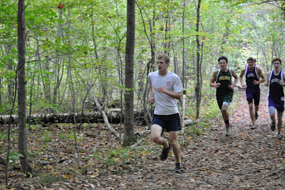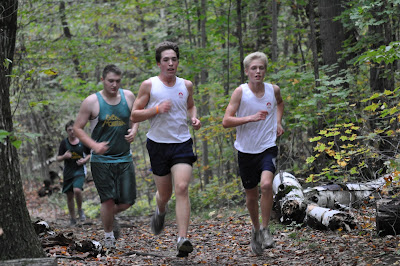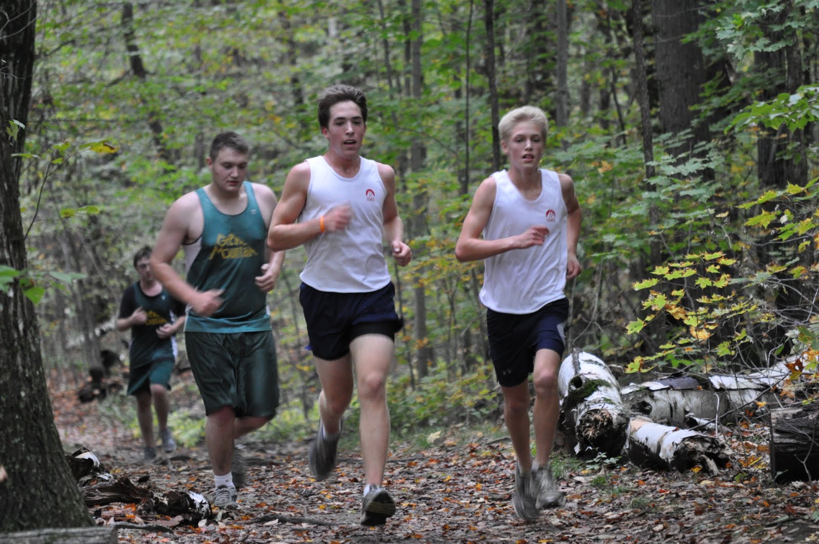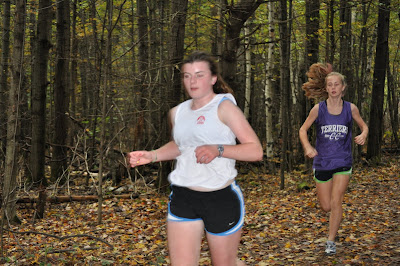 Burr and Burton Academy hosted the cross country race at their trails in town – nice, well maintained, fairly flat trails. The boys get warmed up for their race.