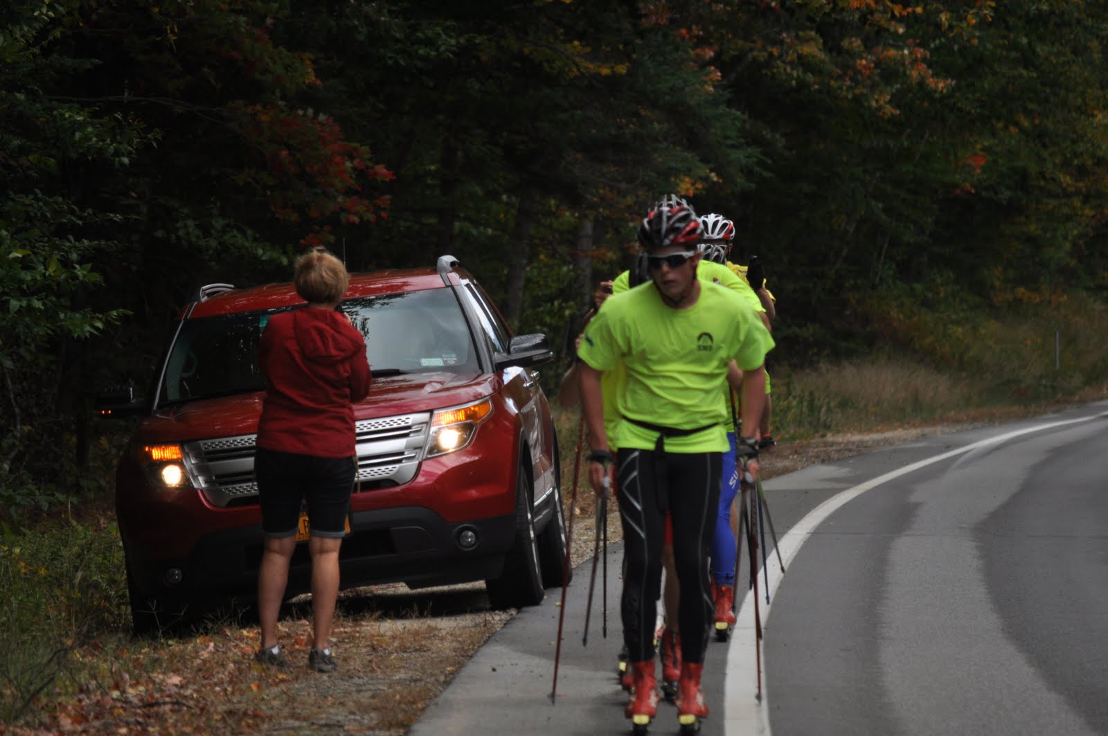 The coaches weren’t the only people taking pictures of the team! Lots of tourists found our skiers just as bright as the foliage. : )