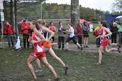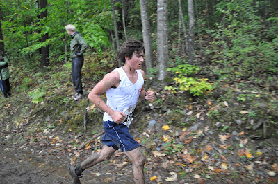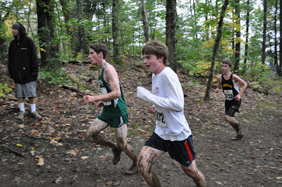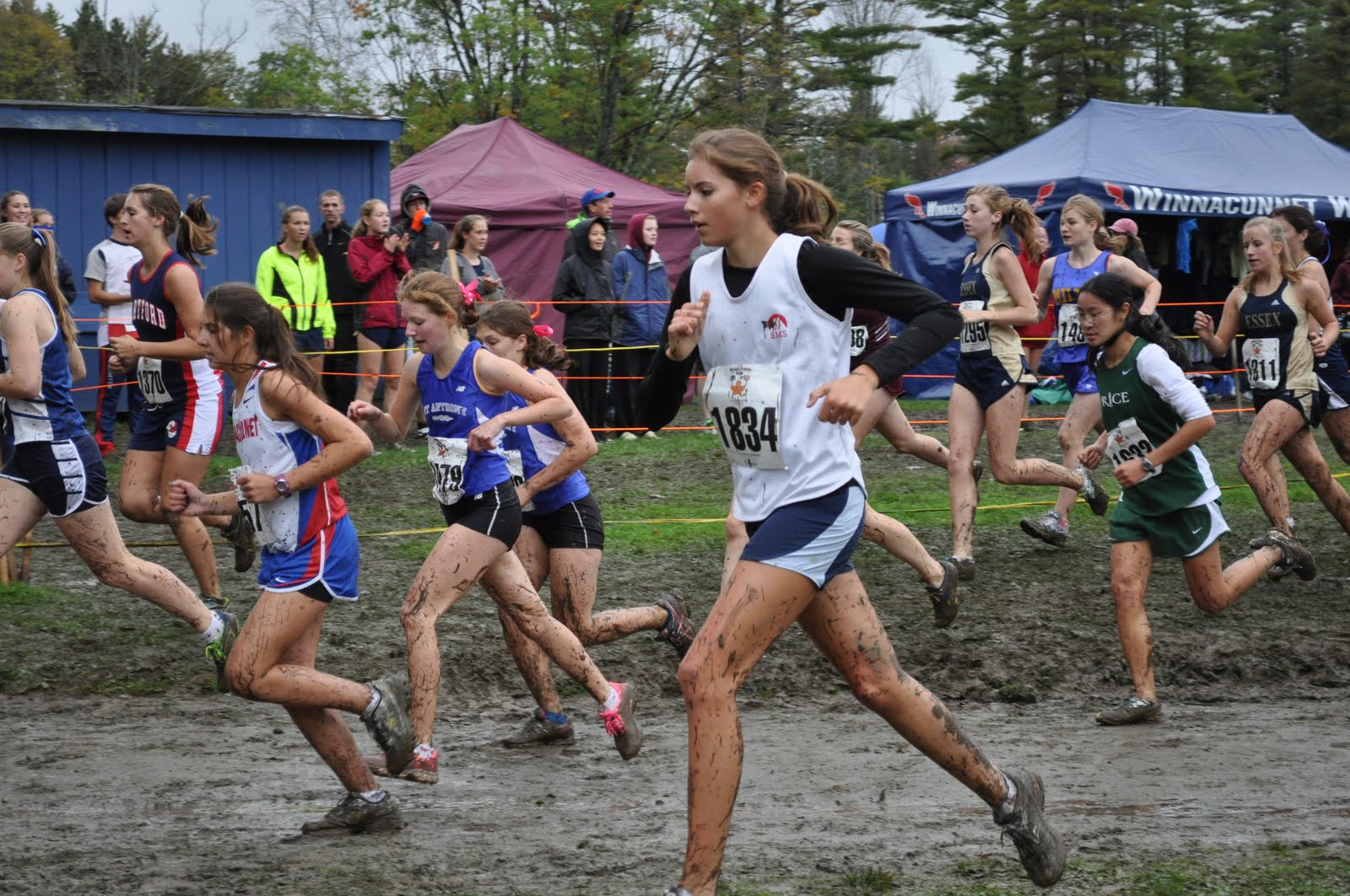 Today we headed up to Thetford, VT for the Woods Trail Run – a large invitational cross country race with over 800 girls and 1000 boys racing. The temperatures were in the high 40s/low 50s and rain throughout the day made the course exceptionally muddy. The Thetford course is known for being a challenging course and with ankle deep mud throughout much of the 5k loop, times were slower than normal for most runners. Calvin’s 7th place performance in the first seed race was a big highlight for the team. Winter termer Russell Boswell matched Calvin’s performance with a 7th place finish of his own in the junior high race. Results & photos below: