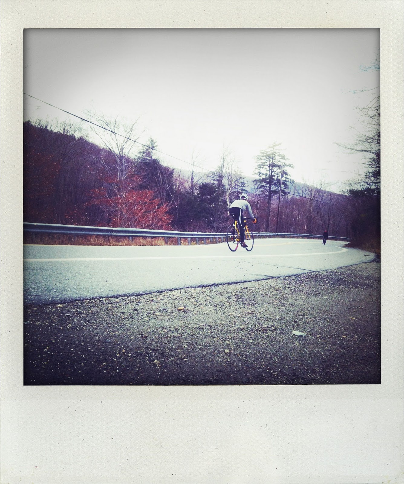 In hopes of finding mental and physical relief yesterday’s intensity we loaded into the vans and headed to the hills. The goal was an adventurous distance session to round out our last volume week before heading to West Yellowstone. Maybe it was the great phenomenon of 1’s lined up on top of each other, or maybe it was just by chance, but there was a nice blanket of snow coating the mountains this morning. Above Mad River Glen we stashed bikes in my truck and shuttled to the west side of the Greens in the van, where we parked at the base of the Jerusalem Trail. We hiked and jogged upwards into increasing whiteness and reflected on the last year, Dev was quick to remind me that on this day (11/11/10) we had skinned and skied Mad River Glen, and the stark change in the weather over the past two days — we’d worked out in shorts and t-shirts in the past days.