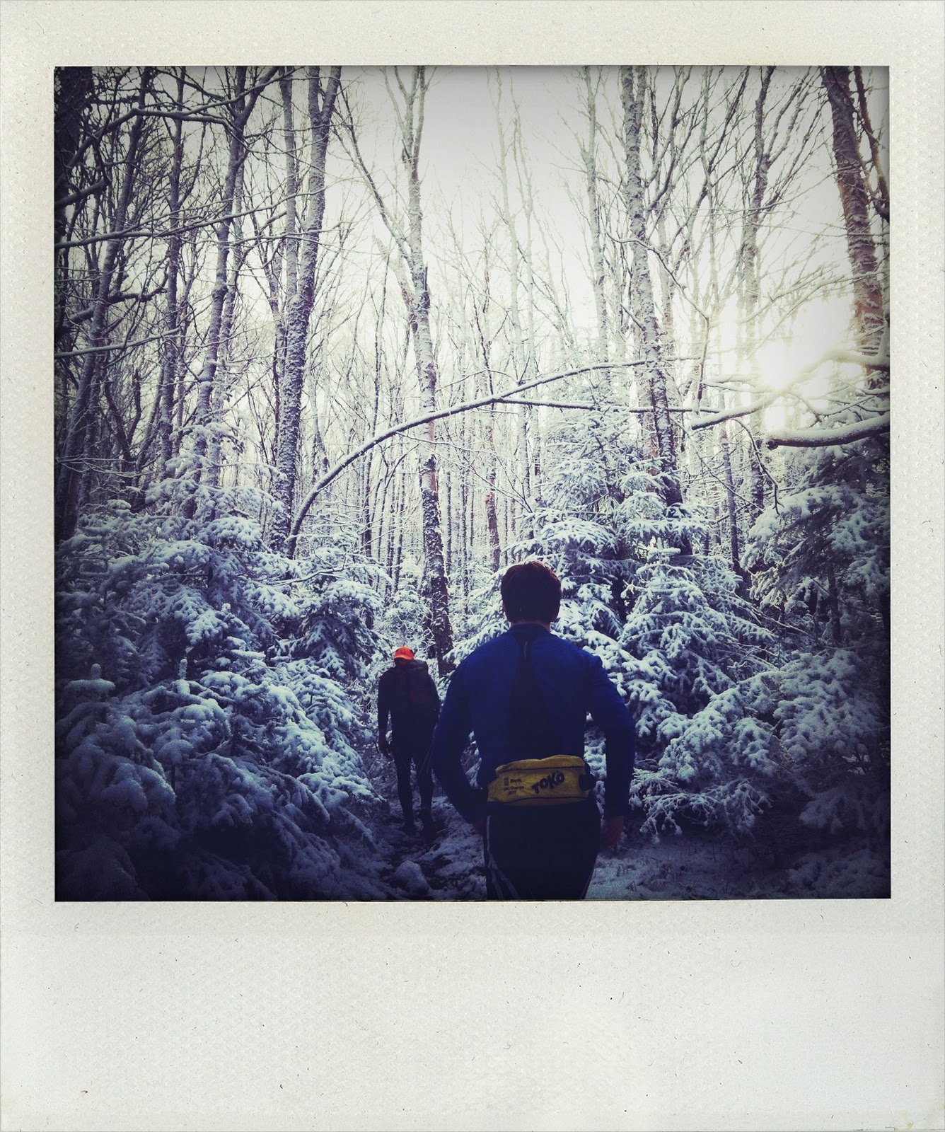In hopes of finding mental and physical relief yesterday’s intensity we loaded into the vans and headed to the hills. The goal was an adventurous distance session to round out our last volume week before heading to West Yellowstone. Maybe it was the great phenomenon of 1’s lined up on top of each other, or maybe it was just by chance, but there was a nice blanket of snow coating the mountains this morning. Above Mad River Glen we stashed bikes in my truck and shuttled to the west side of the Greens in the van, where we parked at the base of the Jerusalem Trail. We hiked and jogged upwards into increasing whiteness and reflected on the last year, Dev was quick to remind me that on this day (11/11/10) we had skinned and skied Mad River Glen, and the stark change in the weather over the past two days — we’d worked out in shorts and t-shirts in the past days.