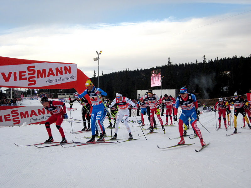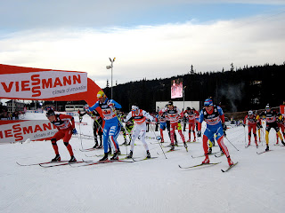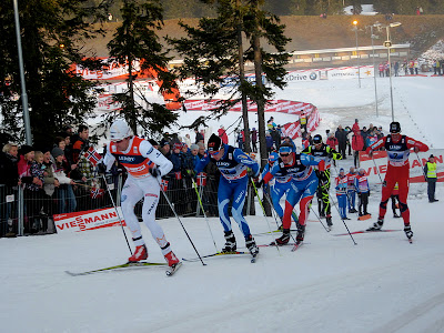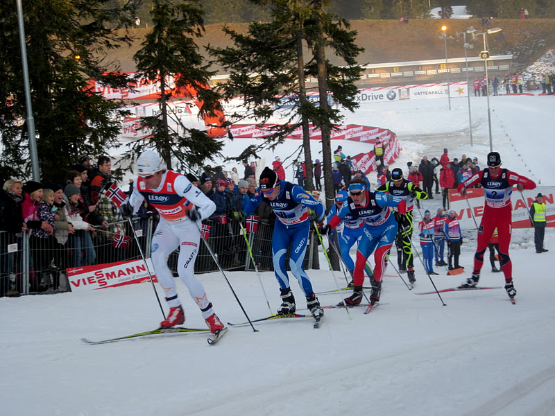 Here I am rounding the final corner anchoring the women’s relay. The other teams are Italy, Russia, Germany & Poland. Out of this five I won a photo finish for second place! Good sprint action and a great result for our team! (photo courtesy of Kikkan!)