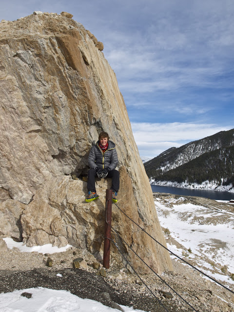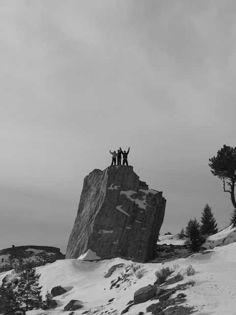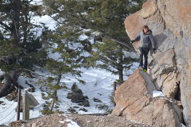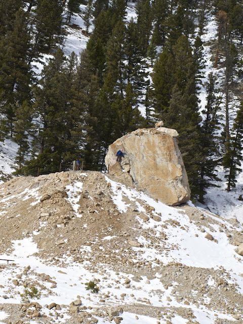Heidi was the first to the top of the windswept vista. The snow-covered foreground was covered with tracks from small mammals, like pica, fox, coyote or wolf.