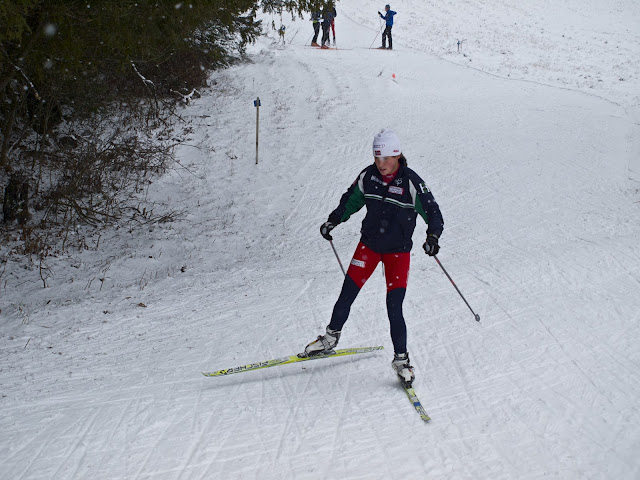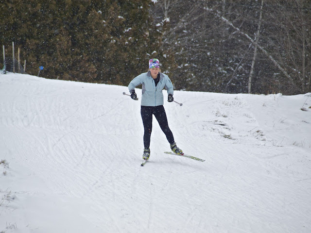 Heidi cools down post workout: we skied the speeds on a 1 km loop, but there were plenty of trails to ski on before and afterwards.