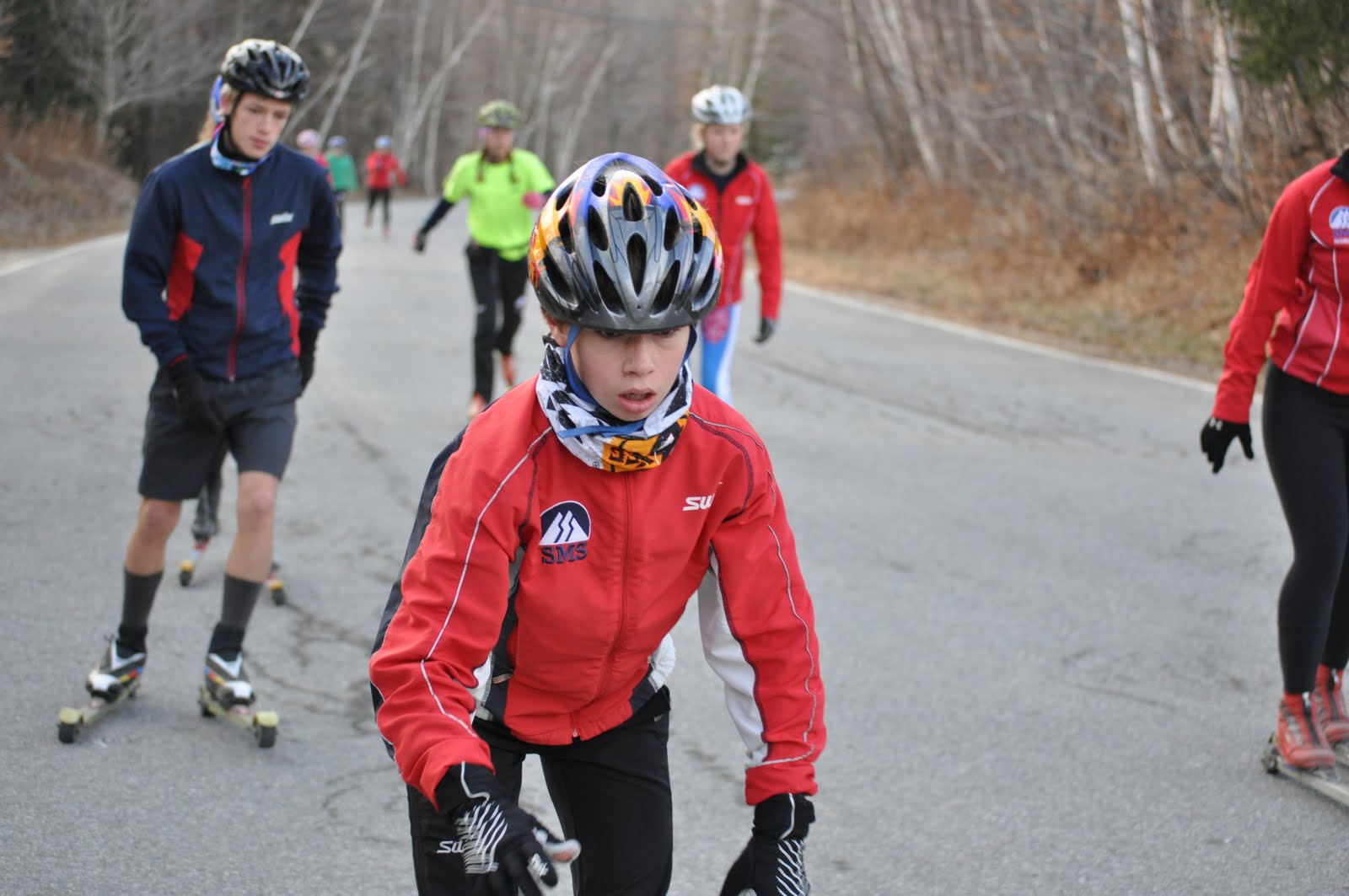 Today was our last practice as a team before we head off for fall camp. Tomorrow the second year J2s, J1s and OJs head out to Snow Mountain Ranch in Granby, CO with Sverre and Matt. The J3s and first year J2s follow on Sunday with Poppet and Liz. Today we had a nice easy classic ski and started off with some no pole skiing (above) and plenty of drills before turning everyone loose to cruise around on their own. The younger kids finished up their waxing before lunch and packed up the van for Sunday and the older kids are just about finished with packing ski bags for their departure tomorrow. Check back for news and photos from Colorado!