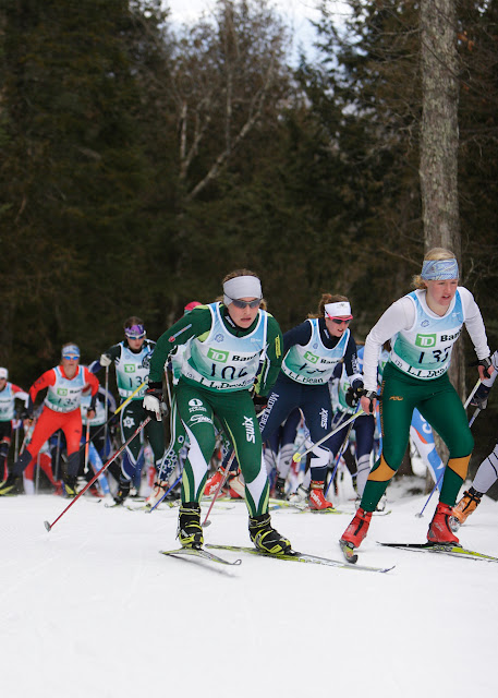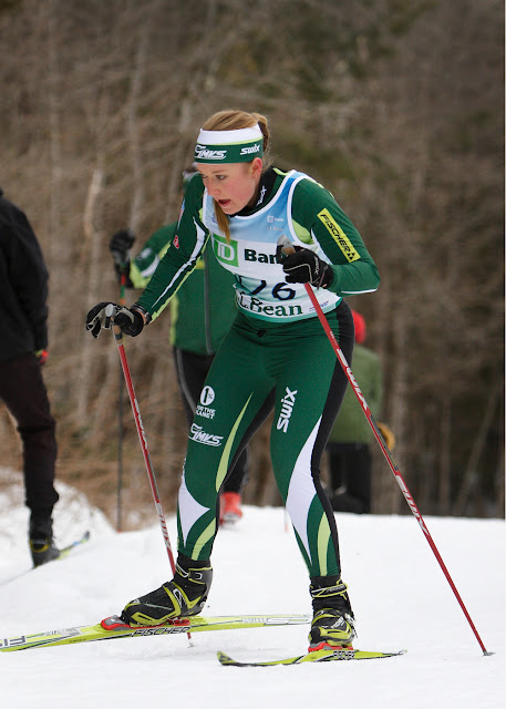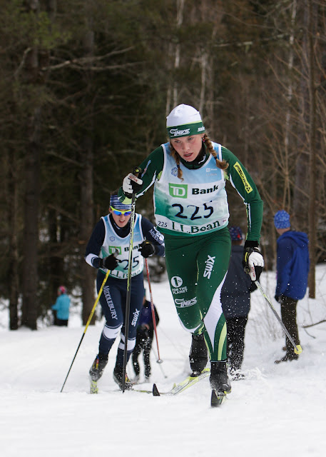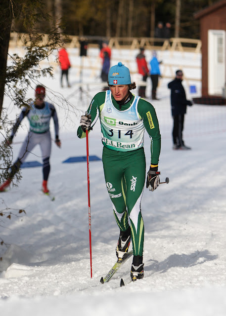 Due to lack of snow the races which are traditionally held in New Hampshire were held up at Craftsbury on a manmade 5km loop. Saturday was a classic individual race with women skiing 5km and men 10km. The entire team had fantastic results, led by an 11th place by Hans, where he was the fourth junior overall — his points from this race got him in the money as far as qualification for the New England team. Devlin also had a strong showing with a 25th place finish, and the 4th J1 on the day. The women were led with MK, who tied for 3rd place overall and secured her place as one of the top women in New England — she was the second ranked skier named to the 25 woman squad. Kaitlin turned in her best classic result of the year, placing 22nd.