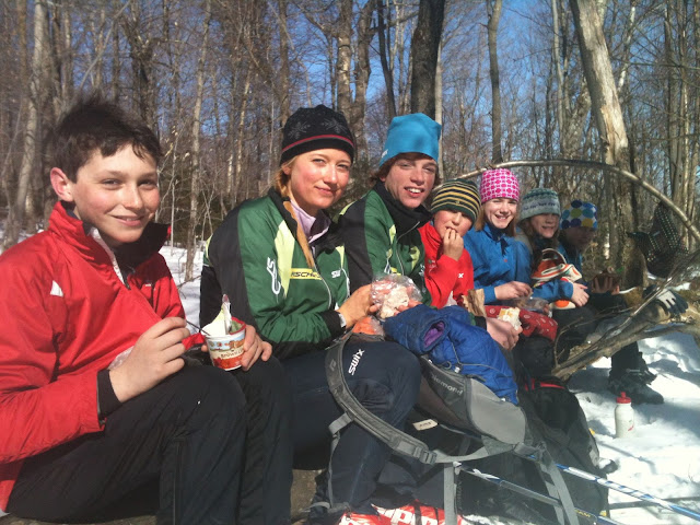 Our lower elevation snowpack is nothing special — well actually as BKL coach Reid Greenberg coined it — SNICE (snow-ice). On Thursday we left the Battleground with klister and climbed up the Catamount Trail towards Huntington Gap on some of the firmest skiable terrain I can remember. After an hour we got up to the VAST Snowmobile trail and then continued on into the beautiful hollow that leads to the Gap proper. A pretty arduous ski and everyone put in a solid effort getting up to the higher elevations where we were greeted by real winter conditions and some awesome scenery.
