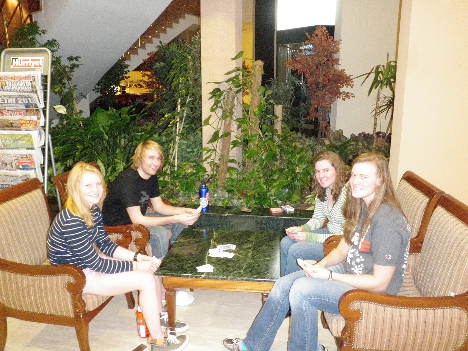 Emily, Will, Mary all from CO and Stephanie from AK. Relaxing like pro’s at the hotel.