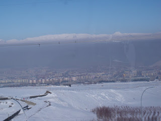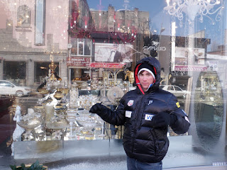Nice cardboard grill. Actually our wax dudes did the same so the rental would make to the race in the morning. Apparently there is no winterized fuel here and a lot of cars, trucks and buses lurch/stall along in the cold. It is -30 in the am and about -3-4 in the day.