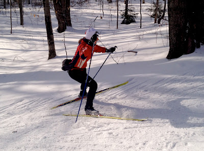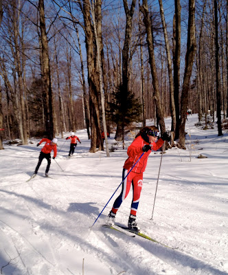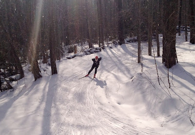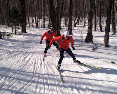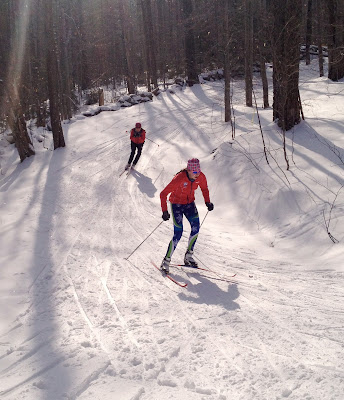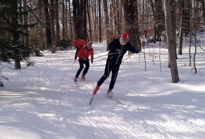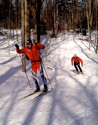 We’ve started off the week with two really great days of skiing on our own nordic trails. Yesterday we did a easy distance skate ski (no pictures, coaches skied too!) and today we did a shorter skate ski where we focused on speed and skiing through transitions and varying terrain. We’re trying to work on a smooth transition and switching techniques seamlessly. Skyler (above) is in town for a few days and it’s always great to have him back with the team and pushing the pace.