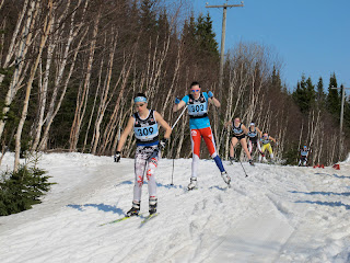 A final! Brooke got a great start, skied in second for most of the race and then V1’d through the deep slush to pass the girl in first and ski away (see below) for a six second win!