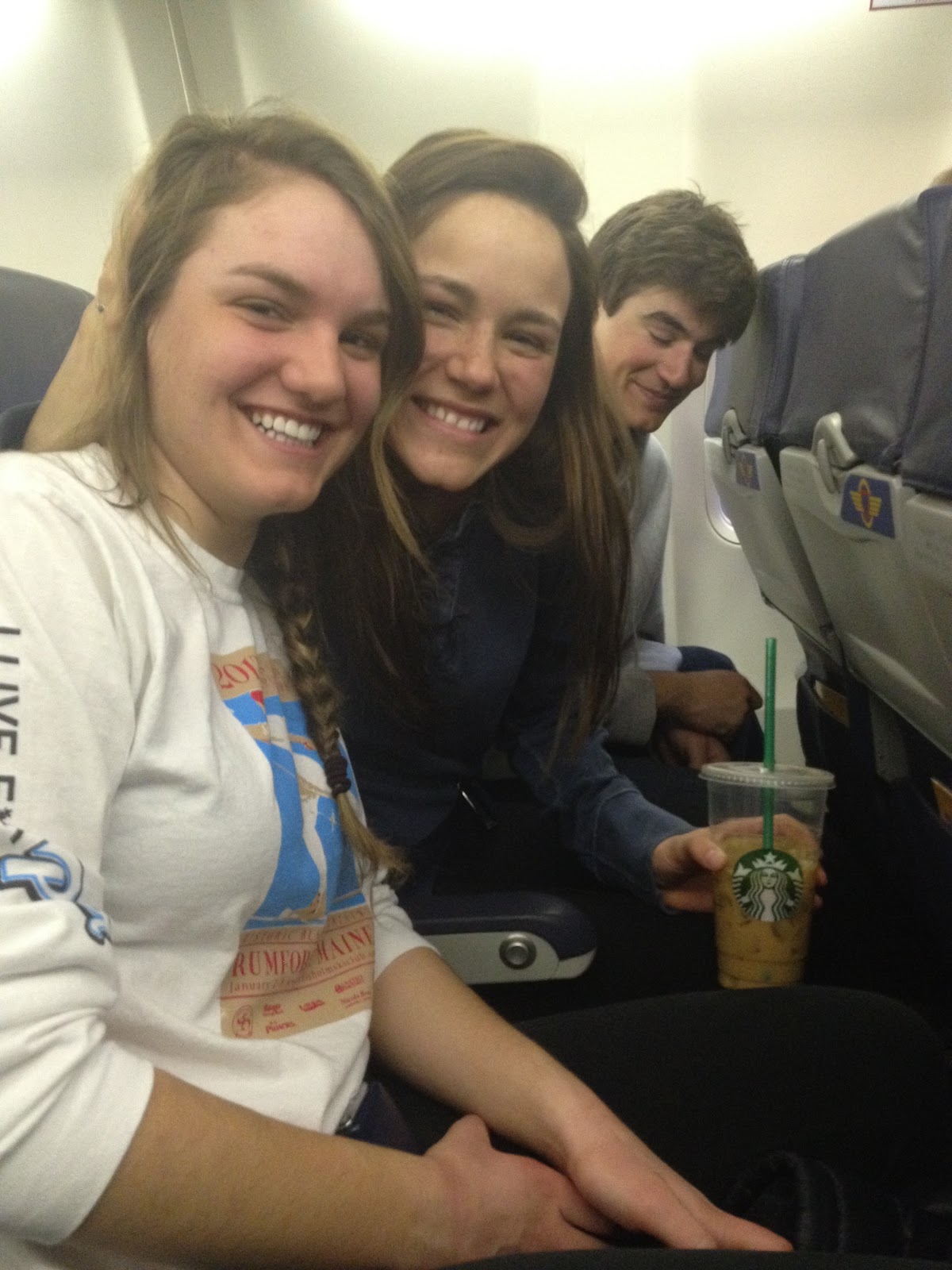 9 of the 11 of us are in Salt Lake City this evening – we’re still waiting on Matt and Tyler to arrive on their later flight, but rumor has it they’ve been rewarded with first class seats for enduring the long wait in DC. We had a super early flight out of Albany, but Issy & Anika (above) were on cloud 9 after finding Starbucks!