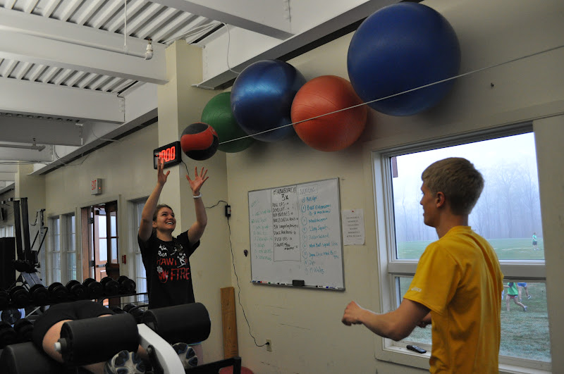 Calvin working on med ball squat throws…