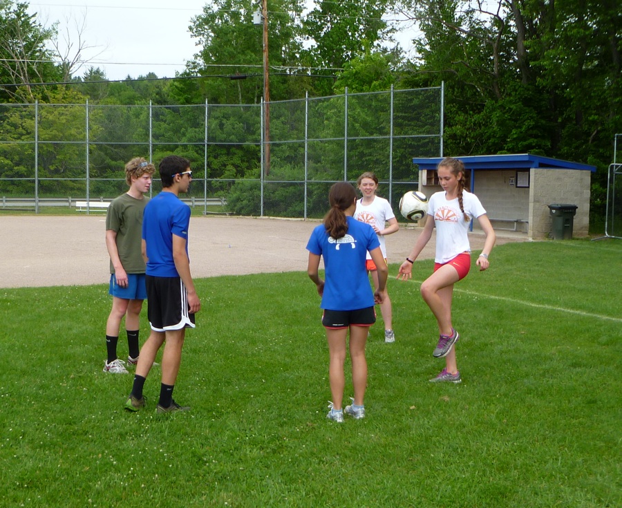 On Monday morning we got a group of Mansfield Nordic Club athletes together for holiday training in Jericho. After some juggling and warmup, we went through our 8x 30″ legspeeds on the track. We even put a few hurdles on the track and Emma Hamilton and Anna Franceshetti showed us just how smooth it is possible to get over ’em. The boys and I were probably jumping 10″ above the hurdle, and our lack of flexibility made it look more like a bucking bronco than anything.