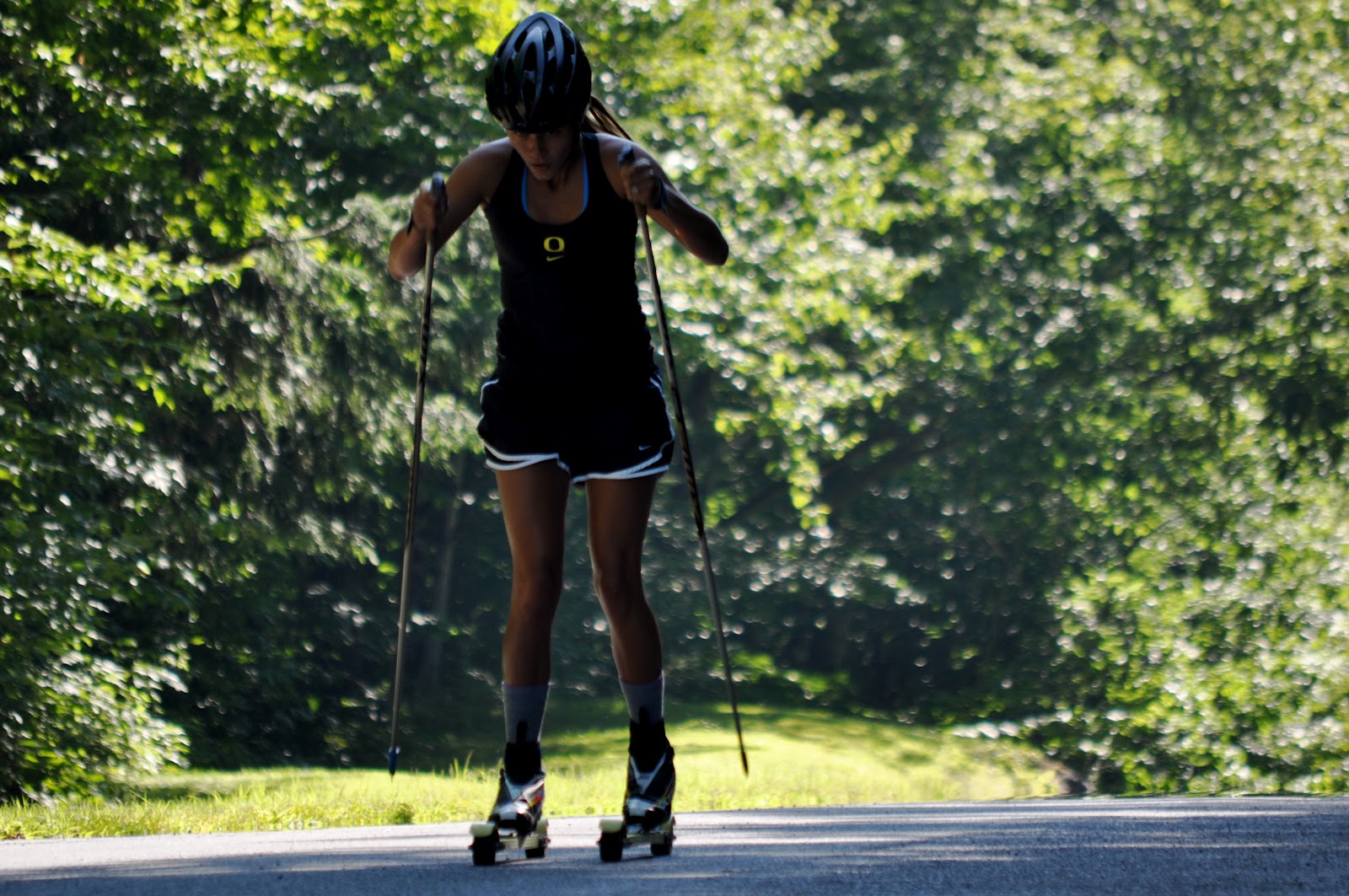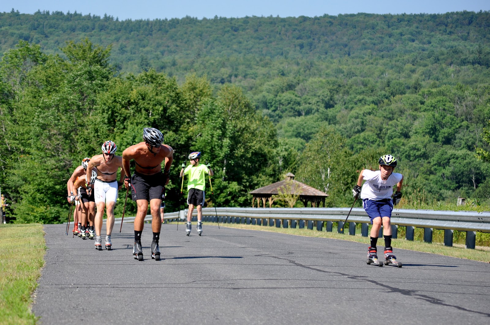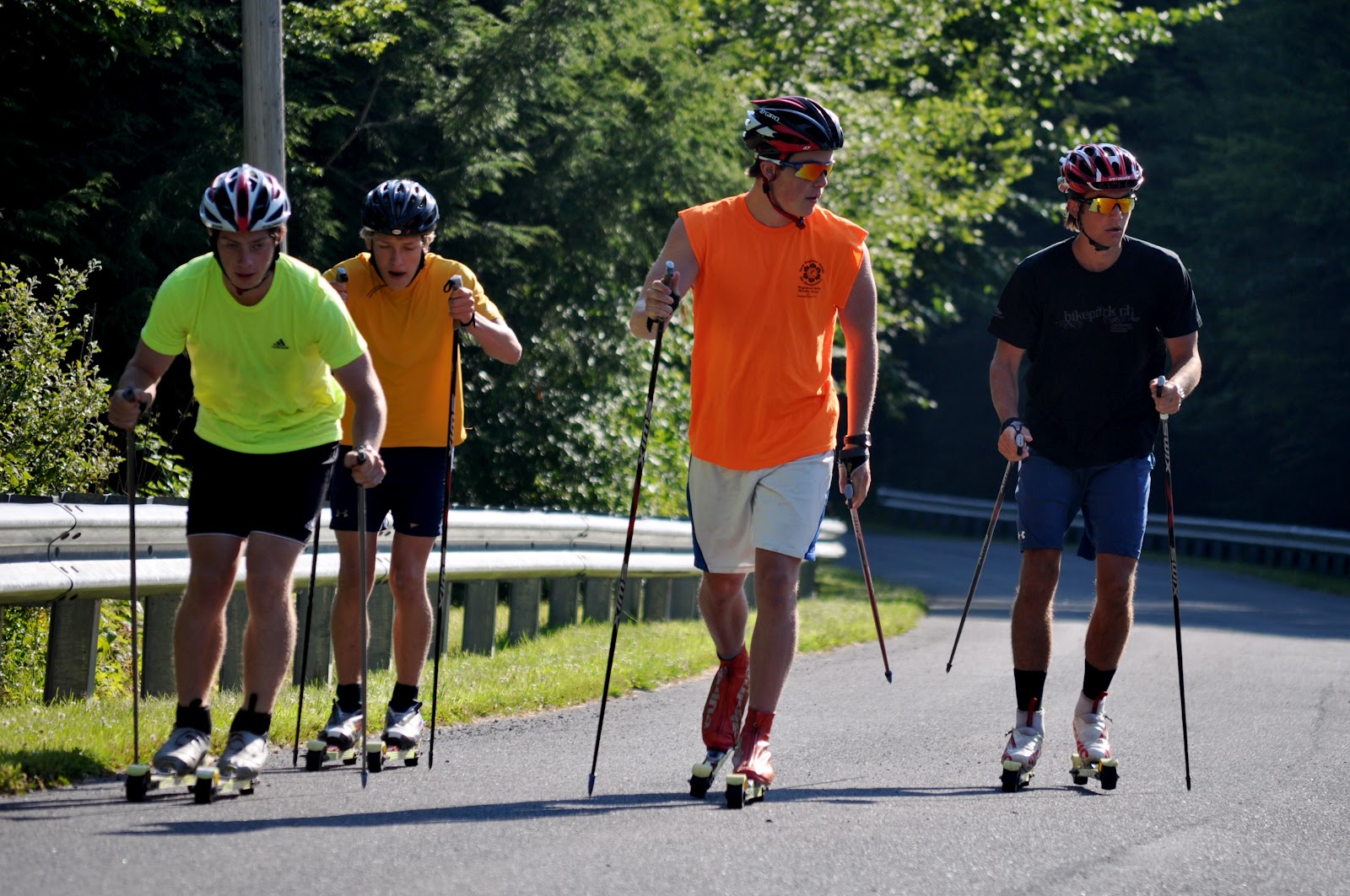 Boys roll through on their first interval. Gino, Koby, and Calvin started part way up the hill and are able to hop in with Skyler and Eric at the top of the hill.