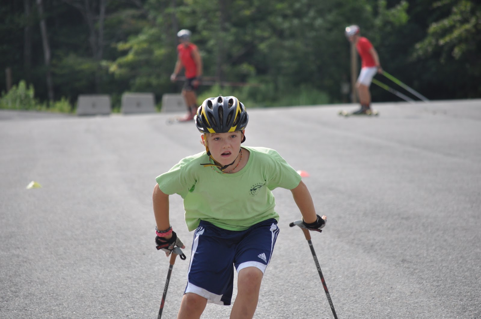 This morning we had 30+ skiers zipping around Lot 1 working on balance, agility, and speed. We split into groups (girls, boys, and devo skiers) and practiced going through slalom courses, working on some different drills, and then practicing starts. It was awesome to have such a big group – devo kids through the elite team – all working on the fundamentals together! Check out lots more pictures on the SmugMug page.