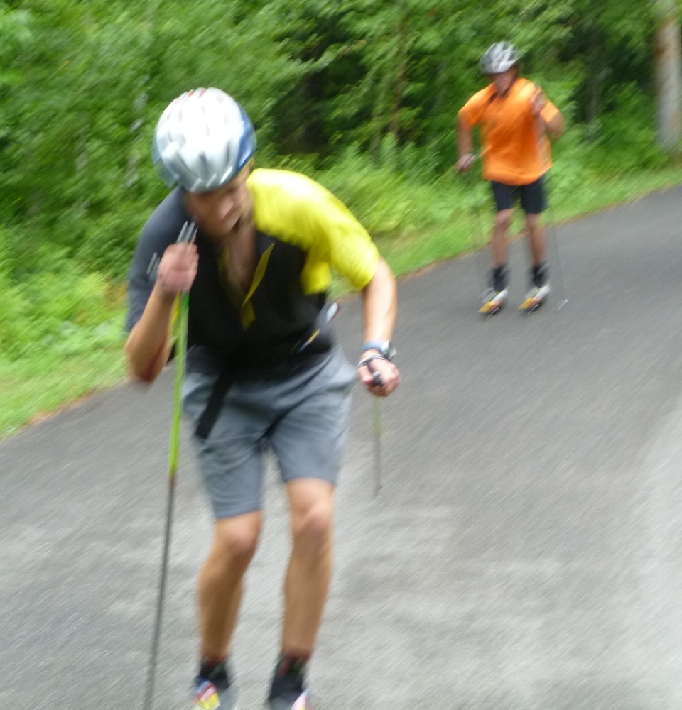 | Another new-comer to rollerskiing – practicing the dobule-pole |