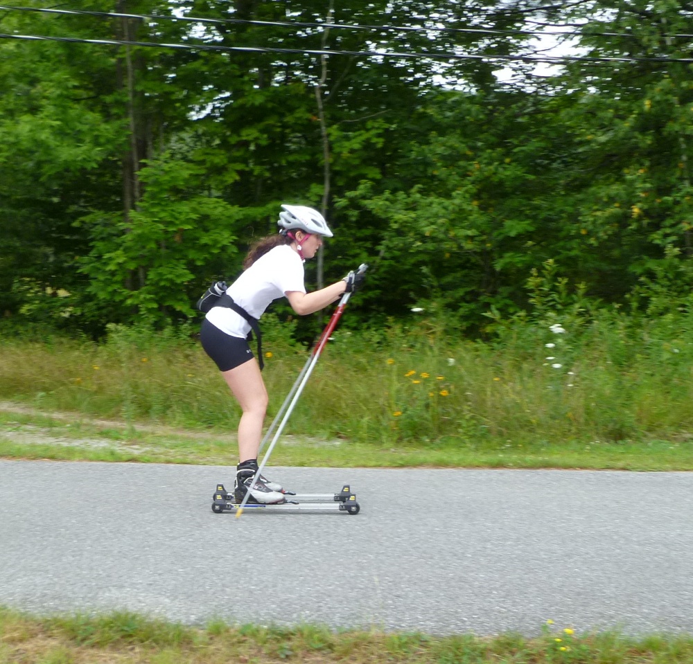 | Destyni has come a long ways already this summer – never rollerskied before June! |