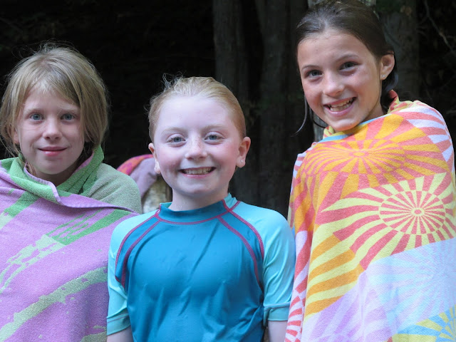 After breakfast we did a cross over hike from Grout Pond, over the mountain to school. Above, the younger kids pose for their picture before taking off on their hike.
