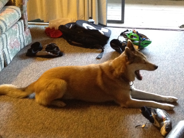 | My Roomate is pretty chill, although he needs to pick up his boots and helmet. (yeah he is a boy dog so he can come to Man Camp). |