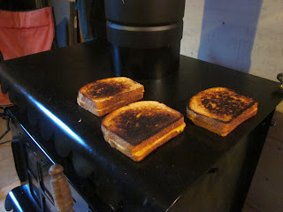 Nothing better than a wood stove grilled cheese after a couple hours of running in the mountains!