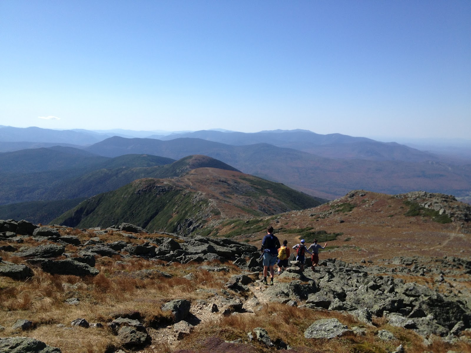 Heading down and across the southern Presidential Mountains Traverse. You can see the ribbon of trail following the ridge line.