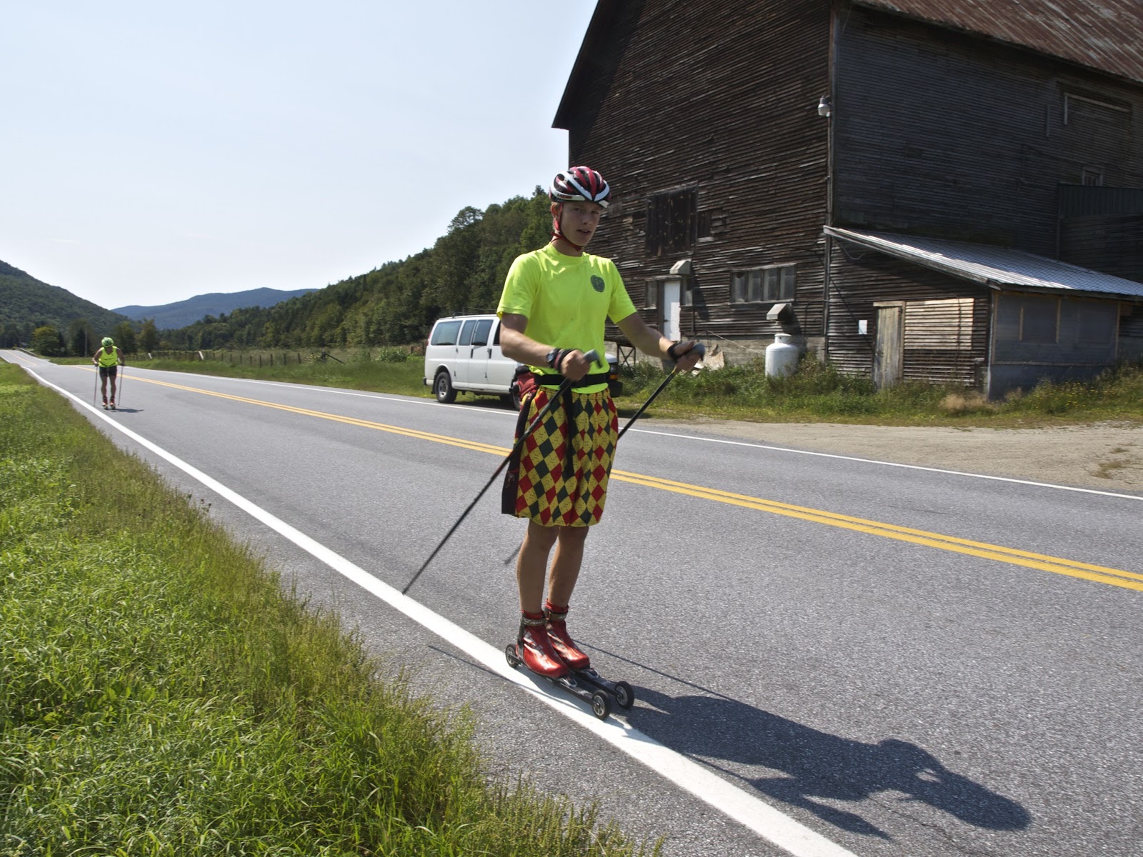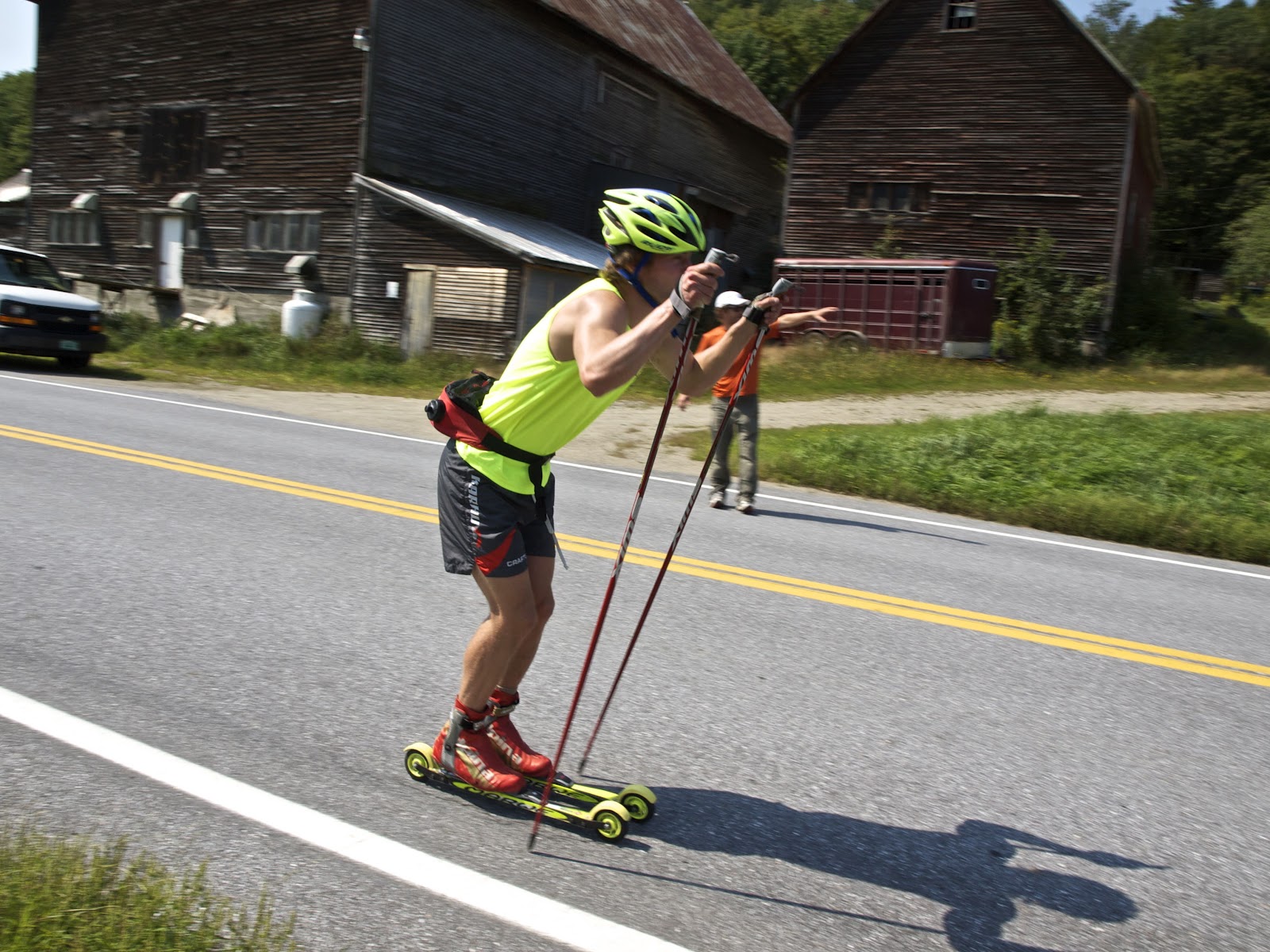 The other day we headed over Granville Gulf to do a skate rollerski on easy terrain. The goal was to ski long and smooth and to get the feeling of going fast on skis. It is also always nice to get a change of scenery, and the beautiful stretch between Rochester and Hancock did not disappoint. We were joined on the road by David Sinclair, who is about to enter his junior year at Dartmouth. Pretty crazy that it’s been that long since he was at GMVS, but it is always awesome to have him around to show us what it’s all about.