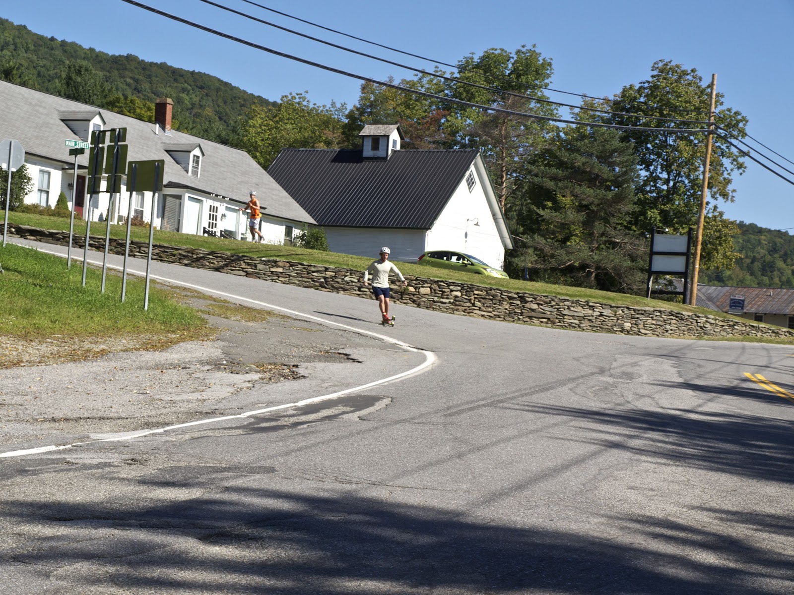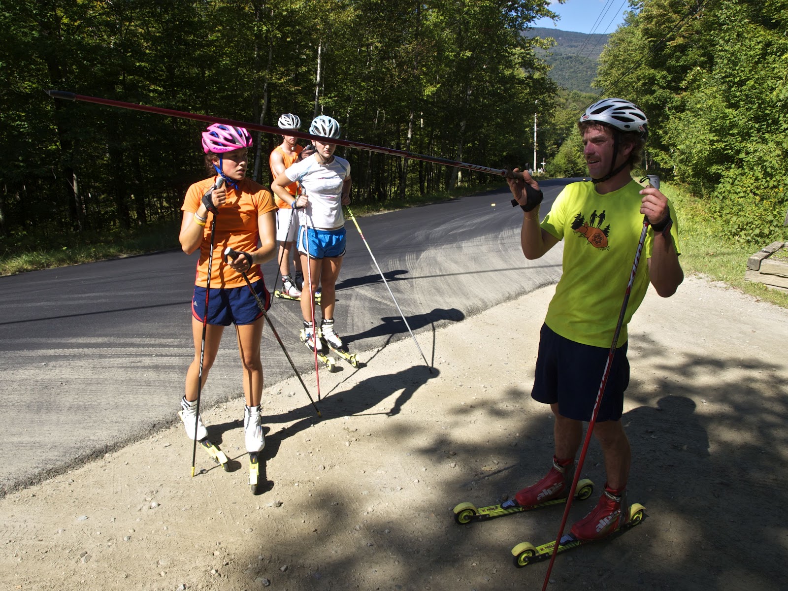 We did a pretty sweet combo workout the other day, with an uphill ski followed by a gradually downhill run. The weather was fine and the spirits were high. The new pavement on one of our favorite routes was pristine, and everyone enjoyed it on the uphill. Justin refused to just ski up, and carved out some unreal turns on the down instead of running. The video is below the pictures.