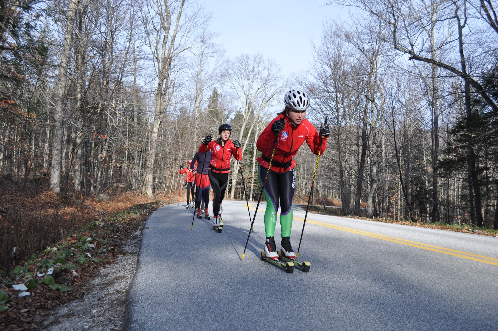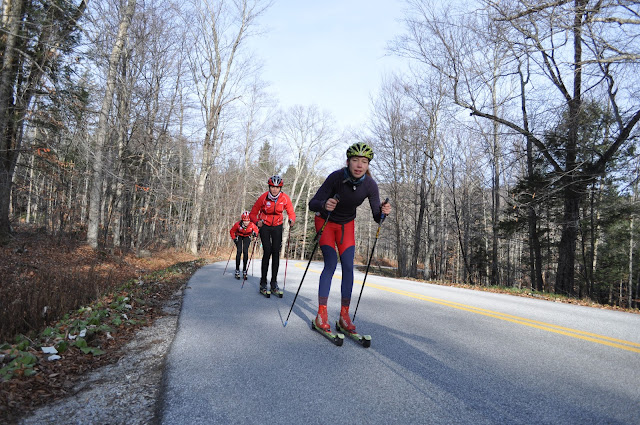 Our last team practice before Thanksgiving break! We classic skied out to Grout Pond and then swapped for running shoes and headed up and over the mountain – which now has a few snow-covered trails, thanks to some recent snowmaking! Rumor has it the boys got some sledding in on their way down… 🙂