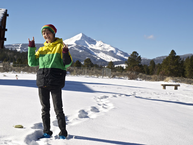 The other day we skied at Lindley Park in the morning, then drove to Sun Valley by way of West Yellowstone. The first stop on the trip was a vantage point of Big Sky, which looked pretty triumphant at midday when we drove by.